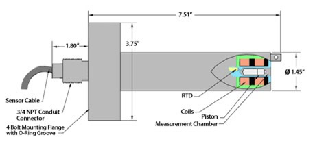 我們的技術基于簡單和穩定的電子式概念。 兩組線圈在一個連續電磁力的作用下來回移動一個微型活塞。專利技術的電路分析活塞來回移動行程的時間,從而測量絕對粘度。 一個內置的RTD溫度測量探頭,實時測量測量室的溫度。